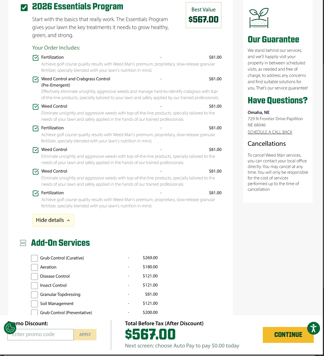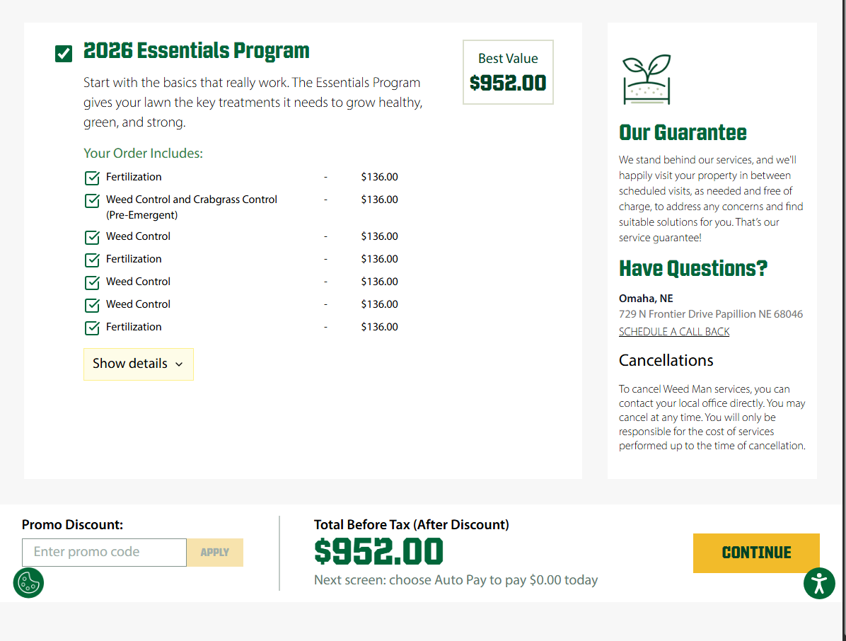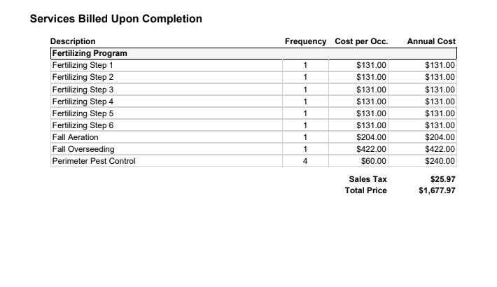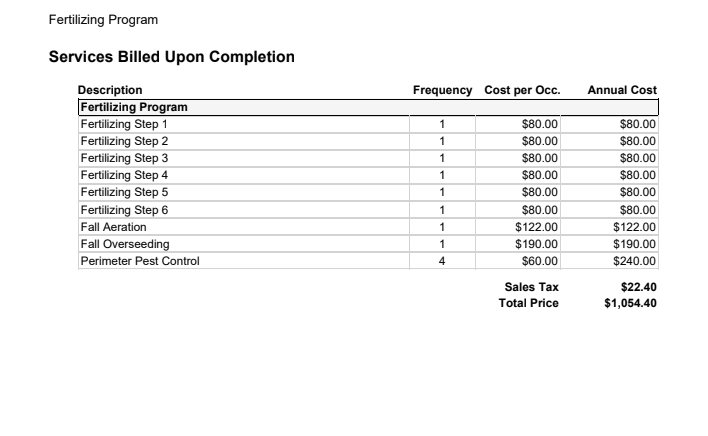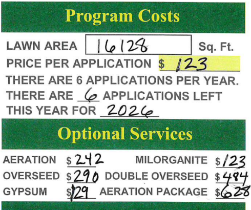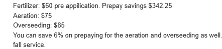 Most Companies, including us, offer around a 5% discount if you pay up front for the season for their fertilizer program.